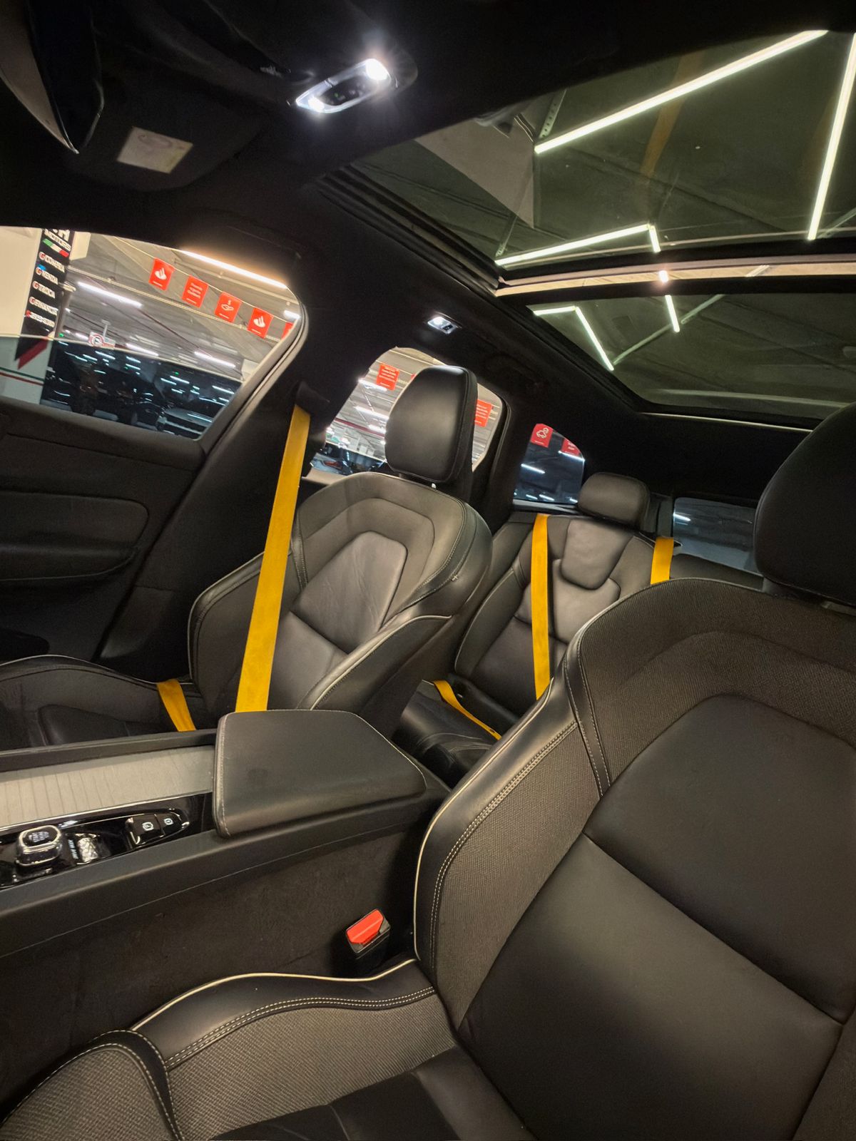 Cintos e pinças de freio na cor amarela.